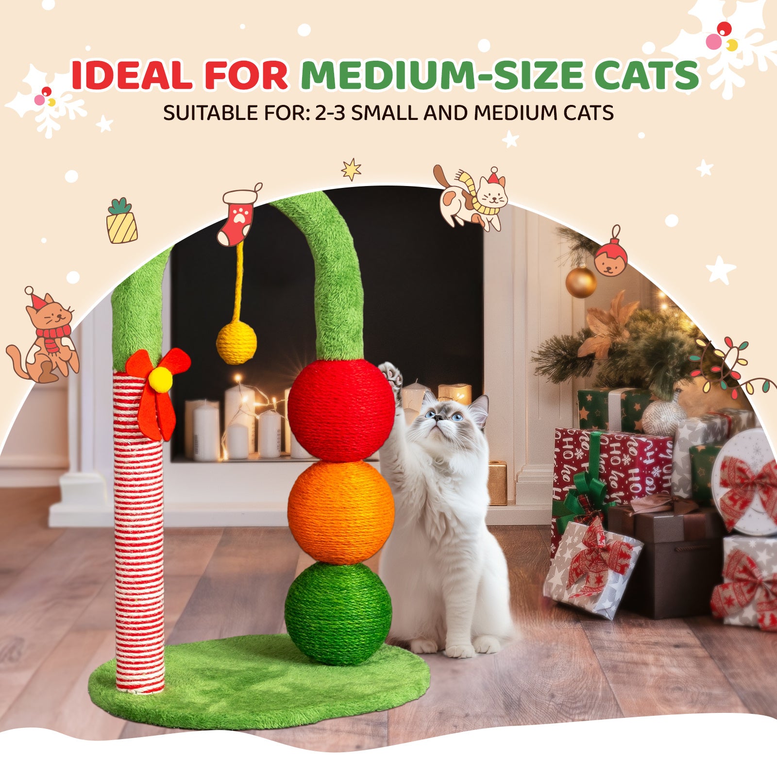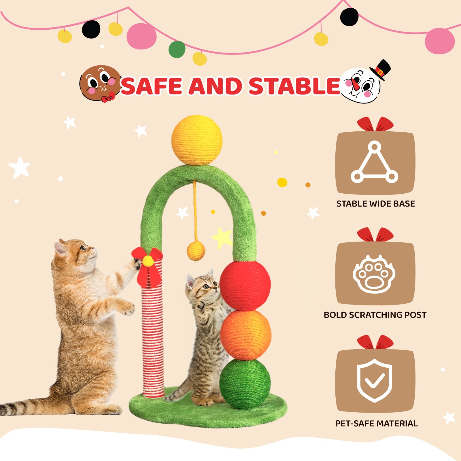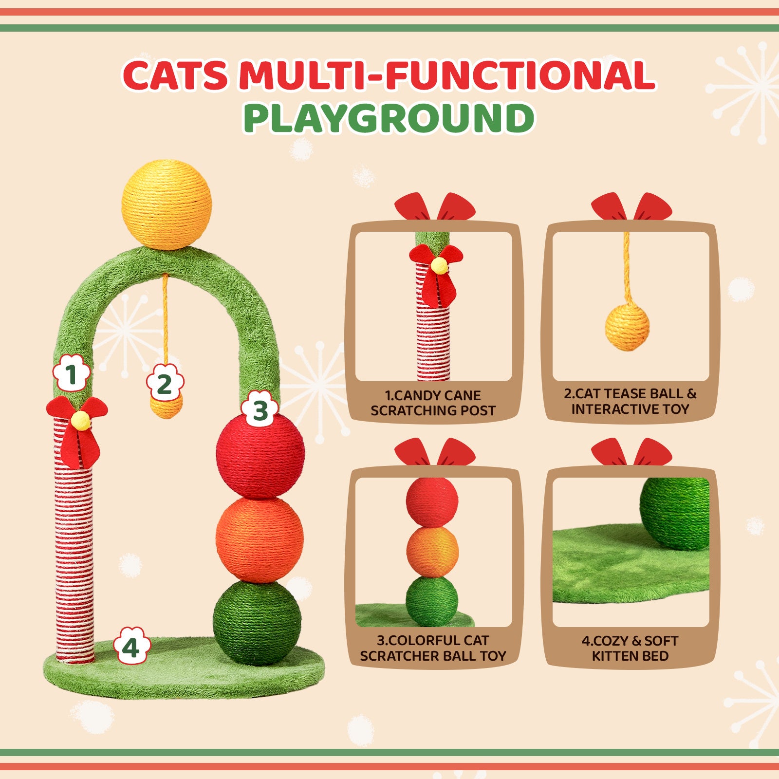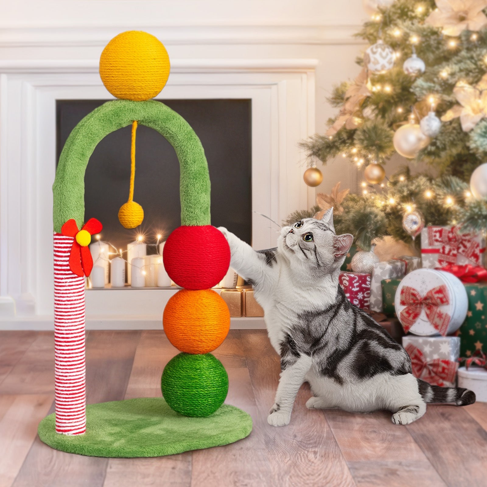 Christmas Cat Scratching Post Tree - Festive Yarn Ball Decor, Multi-Level Sisal Scratcher with Hanging Toy, Easy Assemble for Indoor Cats, Perfect Xmas Gift for Pet Families
